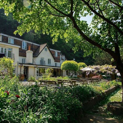 Located just steps from the River Wye and surrounded by mature gardens, this former guest house turned private retreat has space for up to 50 guests, with prices based on 30 guests across 15 bedrooms and the option to add up to 10 more rooms if you’re going big.