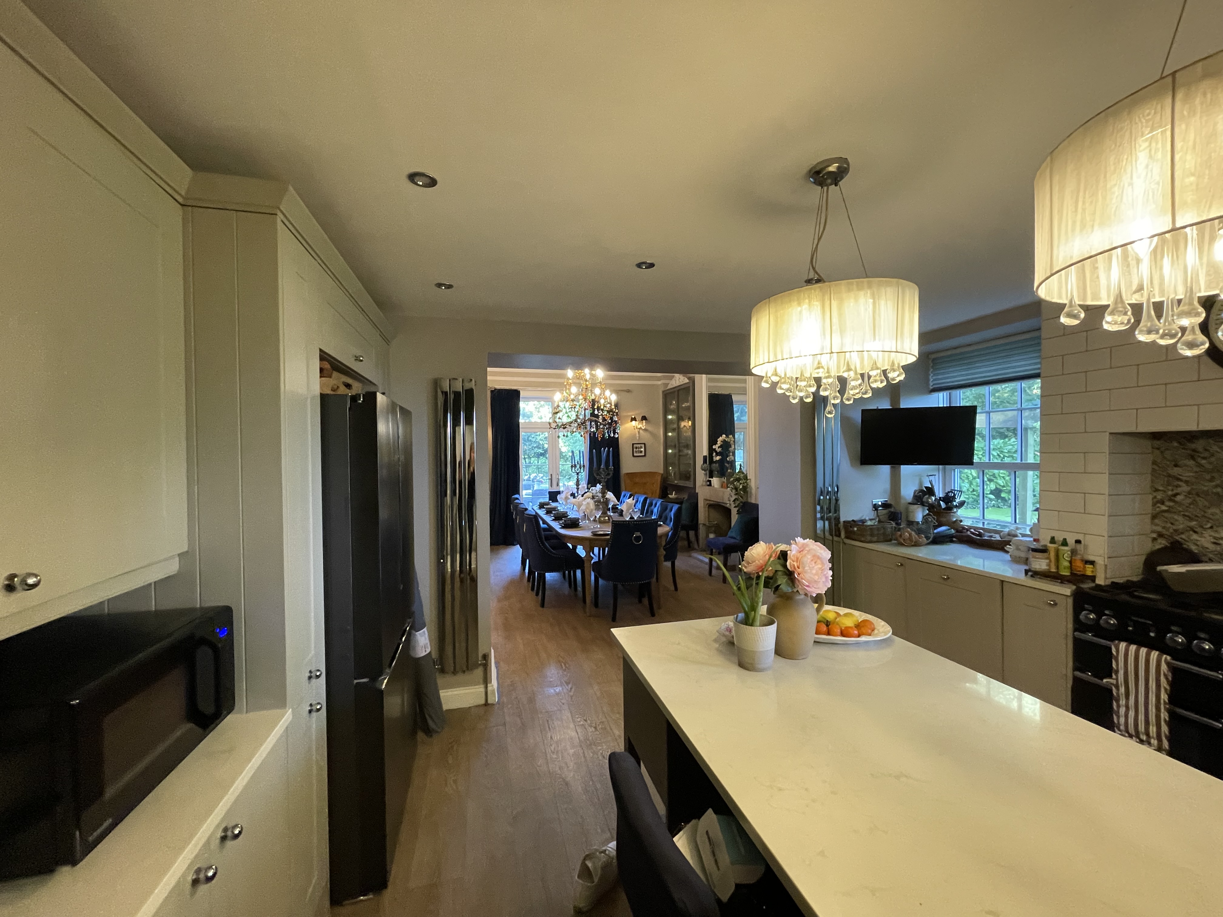 Two well-equipped kitchens - one with sage cabinetry, black appliances and pendant lighting, the other in white with island seating - make catering for a crowd a genuine pleasure. Or let someone else do the cooking entirely - professional catering can be arranged through the team.