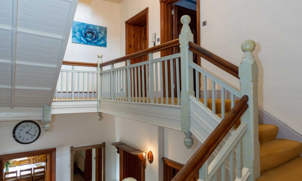 The Mock Tudor features William White designed in the 1880s are still here - carved fireplaces, stone archways, and stained glass windows throughout the house. The grand staircase that featured in The Wheel Spins remains the architectural centrepiece, as imposing now as it was when Ethel climbed it as a child.
