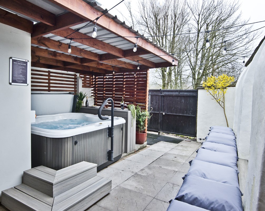 Funky hot tub area for chilling out after a day of activities in the Forest of Dean.