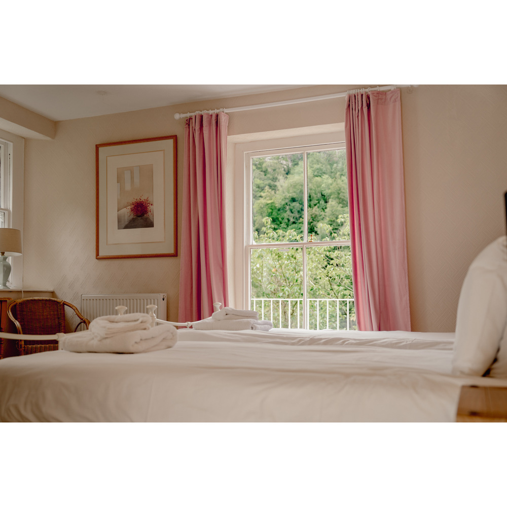 Every room has its own character - from the sage green sitting room with its bay window overlooking the woods, to the snug with its leather armchairs and bookshelves.